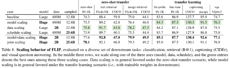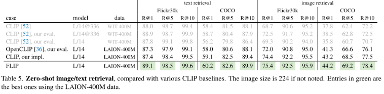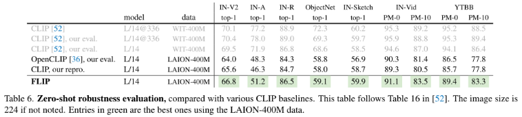 可以看到FLIP的效果比OpenCLIP、CLIP好。FLIP、OpenCLIP比CLIP好可能是训练数据带来的偏差。