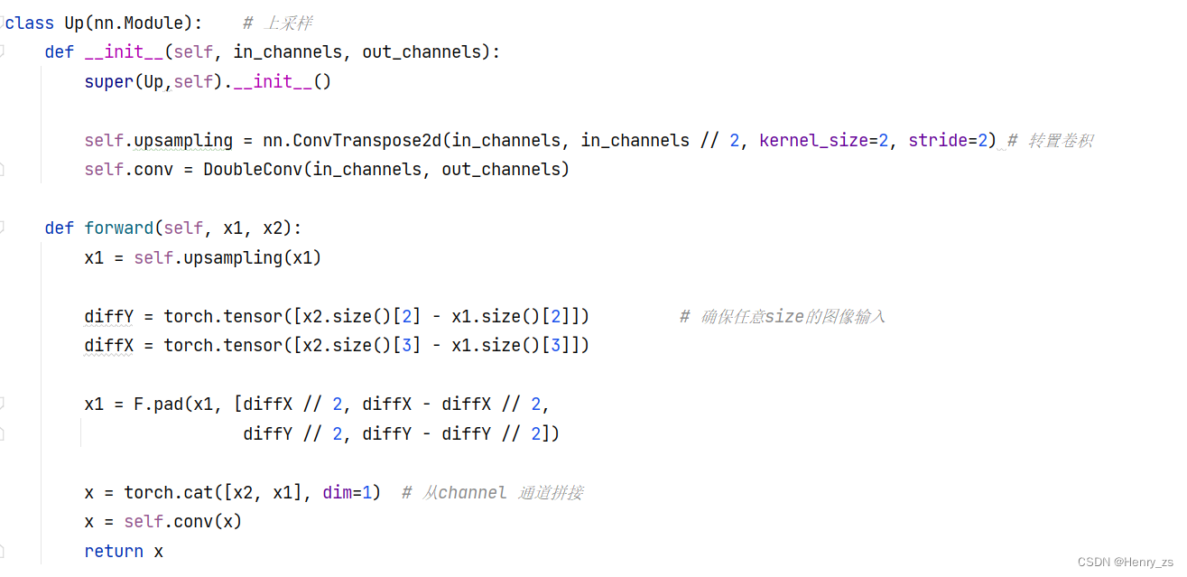 和之前unet网络不同的是,这里通过填充size,可以保证任意图像维度的输入