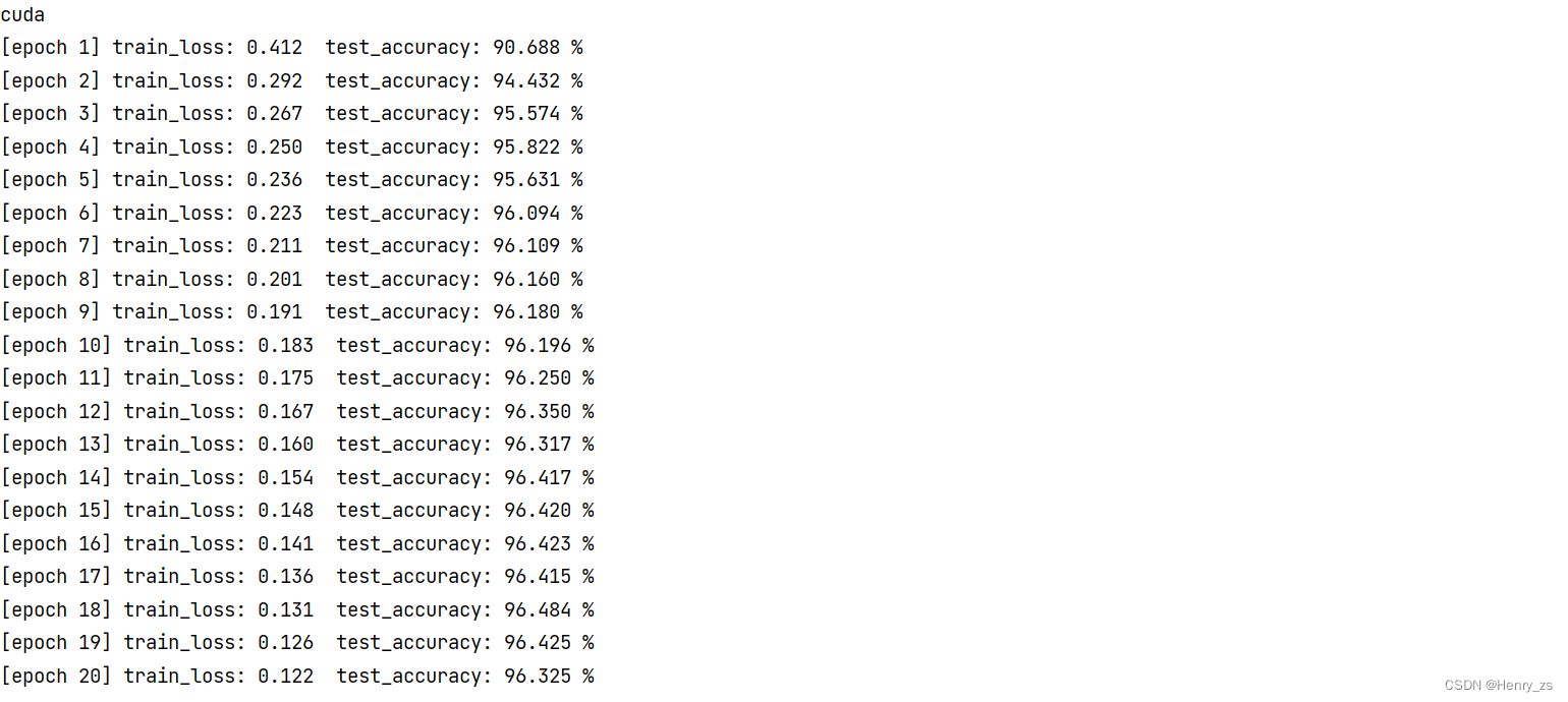 训练了20个epoch,结果显示如下