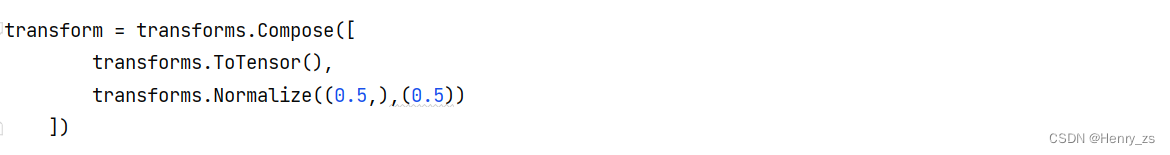 from torchvision import transformsdata_transform = {"train": transforms.Compose([transforms.ToTensor(),transforms.Normalize((0.5, ), (0.5, ))]),"test": transforms.Compose([transforms.ToTensor()])