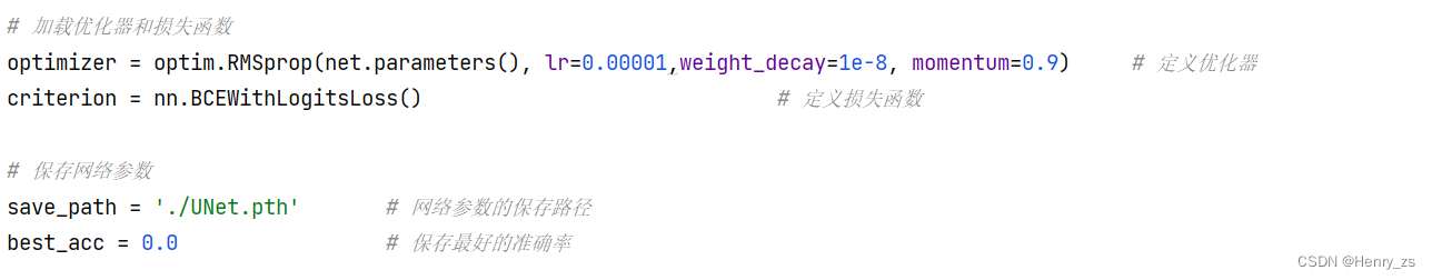 optimizer = optim.RMSprop(net.parameters(), lr=0.00001,weight_decay=1e-8, momentum=0.9) # 定义优化器