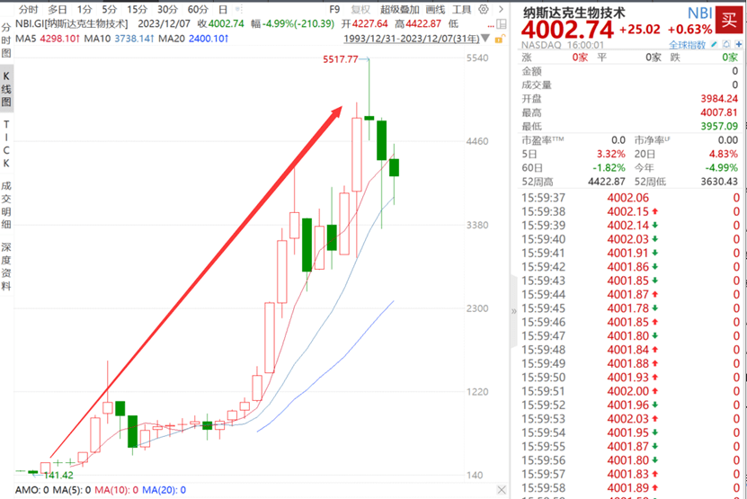 隔夜(2023年12月7日)美股全线收涨,道指涨0.17%,标普500指数涨0.8%,纳指涨1.37%,表征美股创新药的纳斯达克生物科技指数(NBI)收涨0.63%,录得八连阳,掀起一波攻势凌厉的反弹行情!