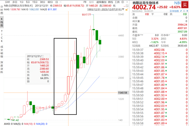 【纳指生物科技指数自1993年发布以来的年线走势图】