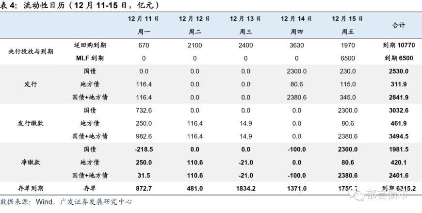 广发固收研报提醒,12月11-15日资金面需要关注三大因素:
