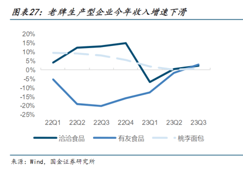 当率先布局量贩渠道的上游企业已经在业绩上看到回报,被落下的企业只能在竞争面临劣势。截至23Q3,盐津、甘源、劲仔零食量贩渠道月销同比均实现翻倍增长,其中最早与零食很忙合作的上游厂商盐津铺子年初以来收入/利润分别实现50%/80%以上增长。这与传统生产型企业收入下滑的现状形成鲜明反差。