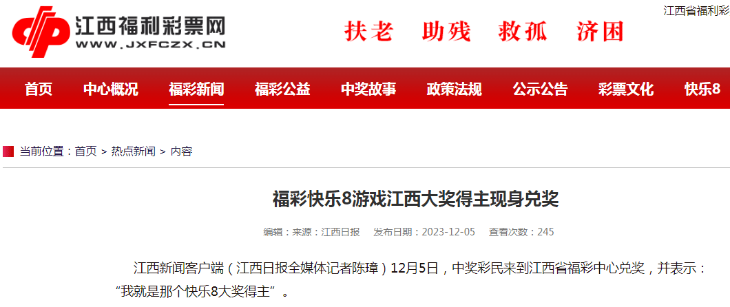 据江西日报报道,12月5日,中奖彩民来到江西省福彩中心兑奖,并表示:“我就是那个快乐8大奖得主。”