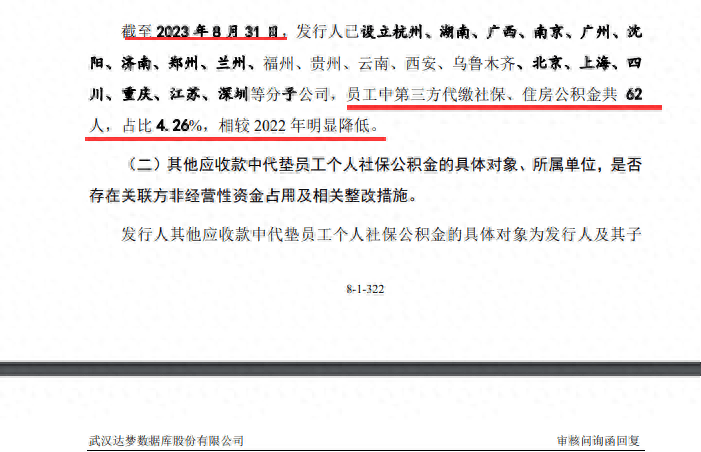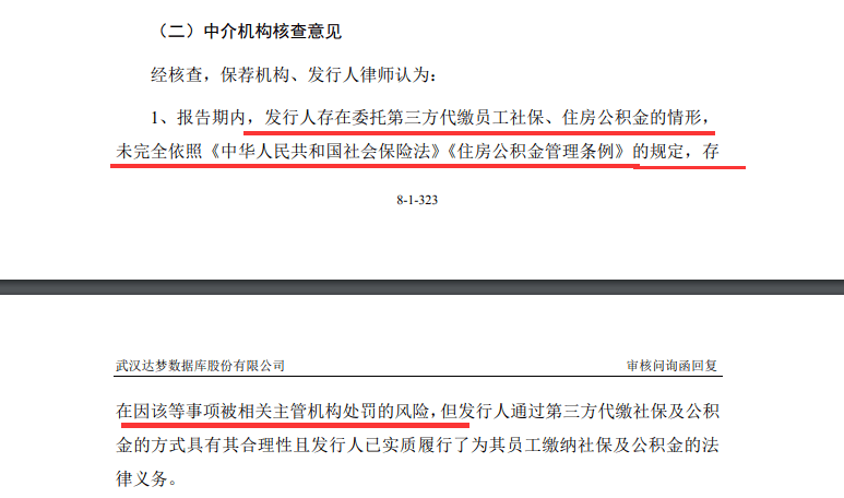 不过,在2022年12月22日过会后,达梦数据截至近日最新更新的回复内容显示,员工社保、公积金代缴的问题仍未得到彻底整改、整改未完成,仍存在员工社保、公积金代缴的违规问题。